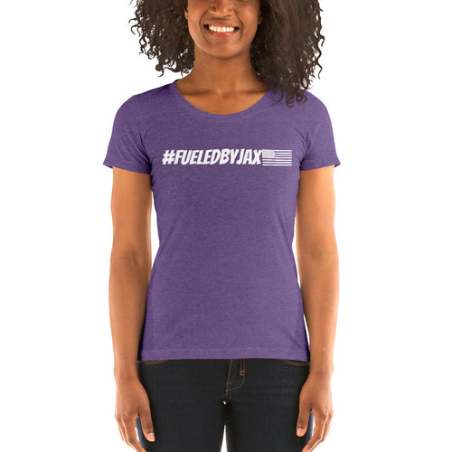 Jax Nutrition White #fueledbyjax Ladies' short sleeve Tri-Blend Tee (Bella + Canvas 8413)