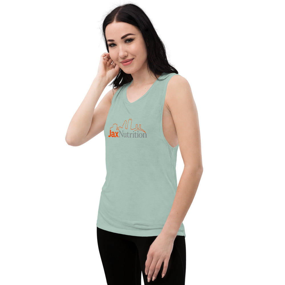 This comfortable muscle tank is soft and flowy with low cut armholes for a relaxed look.